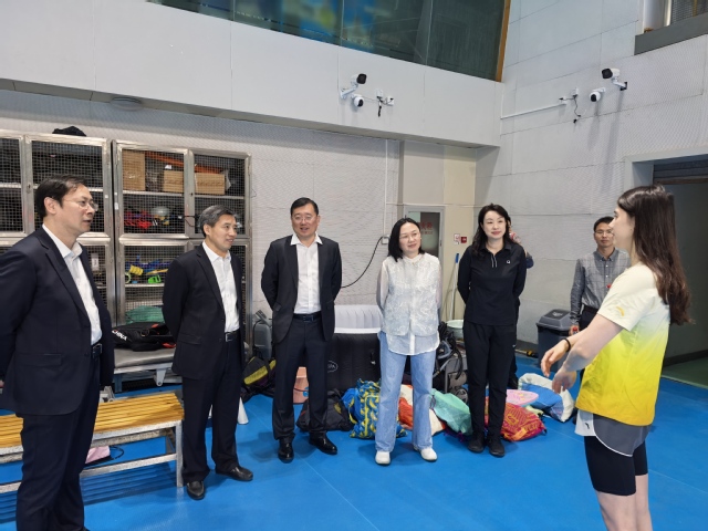 校领导与张雨霏国家队主带教练交流中