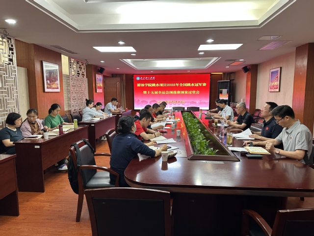 5月13日上午,游泳学院跳水队在行政办公楼301会议室召开2025年全国跳水冠军赛暨全运会资格赛预案过堂会。党委常委、副校长刘健,党委常委、党委宣传部部长、党委统战部部长许立俊出席会议。训练处副处长叶蓁、游泳学院党总支书记骆晓娟、跳水队全体管理干部、教练员和科医保障人员参加会议。会议由游泳学院院长王伟新主持。