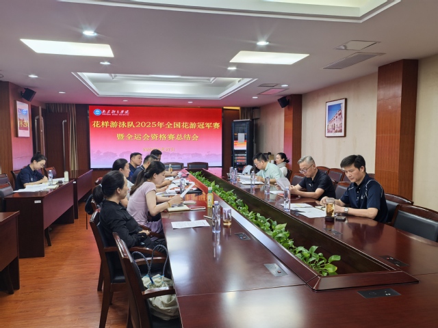 9月27日下午,游泳学院花样游泳队在行政办公楼301会议室召开2025年全国花游冠军赛暨十五届全运会资格赛总结会。党委常委、副校长刘健出席会议。训练处副处长叶蓁、游泳学院党总支书记骆晓娟、院长王伟新、花游队全体管理干部、一线教练员、体能教练及科医保障人员参加会议。会议由王伟新主持。