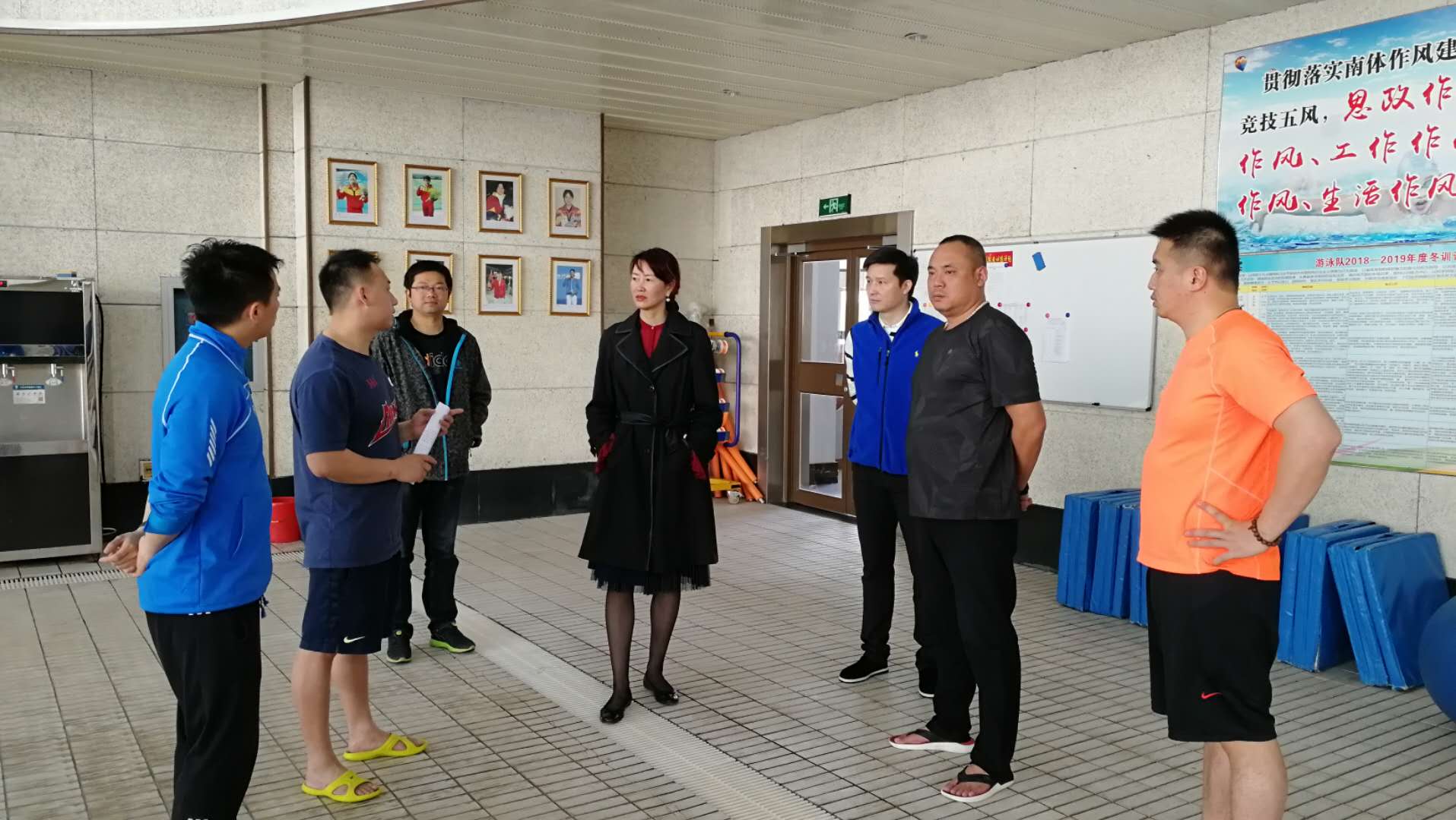427日上午,副校长肖爱华到游泳学院检查游泳队、花样游泳队、跳水队训练出勤情况。在检查训练期间她与教练员、运动员、科研人员进行了交流,着重了解了二青会和全国一类比赛的组队备战情况、重点运动员的训练情况以及各运动训练参赛的科研、医务、营养等保障情况。