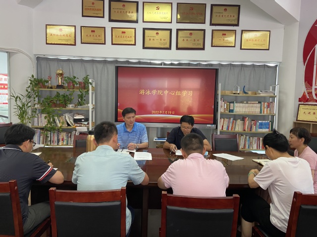 7月19日上午,游泳学院党总支开展中心组学习,继续深入学习习近平关于体育的重要论述。游泳学院党总支书记王伟新主持会议,游泳学院全体管理干部参加了会议。