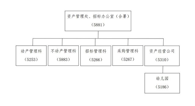 资产管理处(国资办)、招标办公室(合署)作为学校的行政职能部门,统筹管理学校国有资产、物资采购和招标管理工作,现设有5个科室:动产管理科、不动产管理科、招标管理科、采购管理科、资产经营公司(幼儿园)。